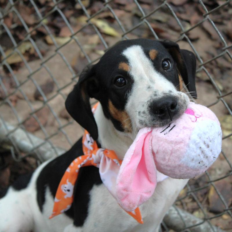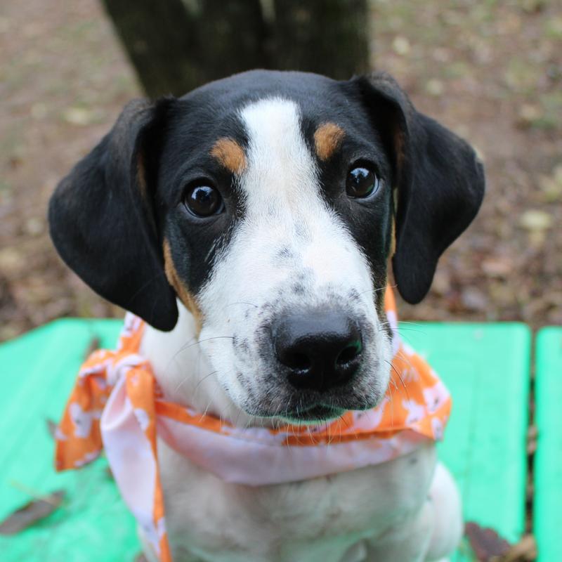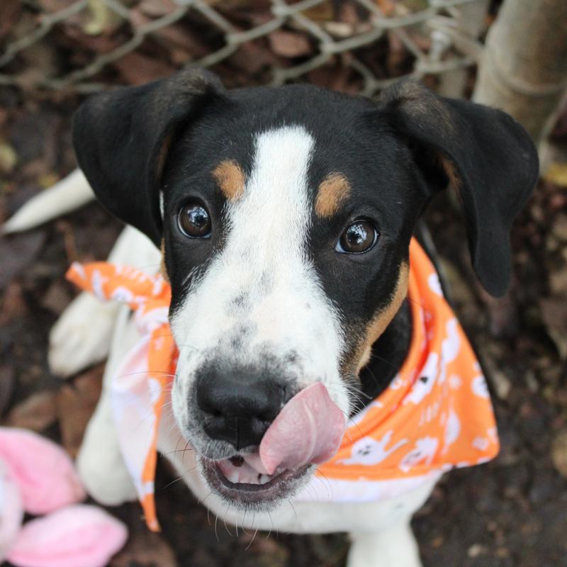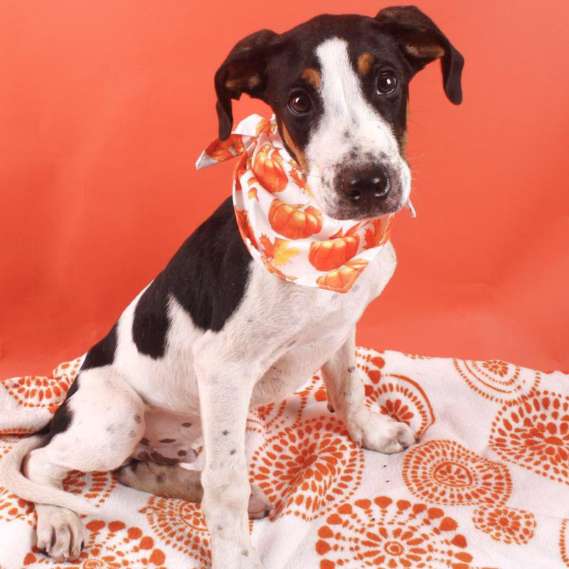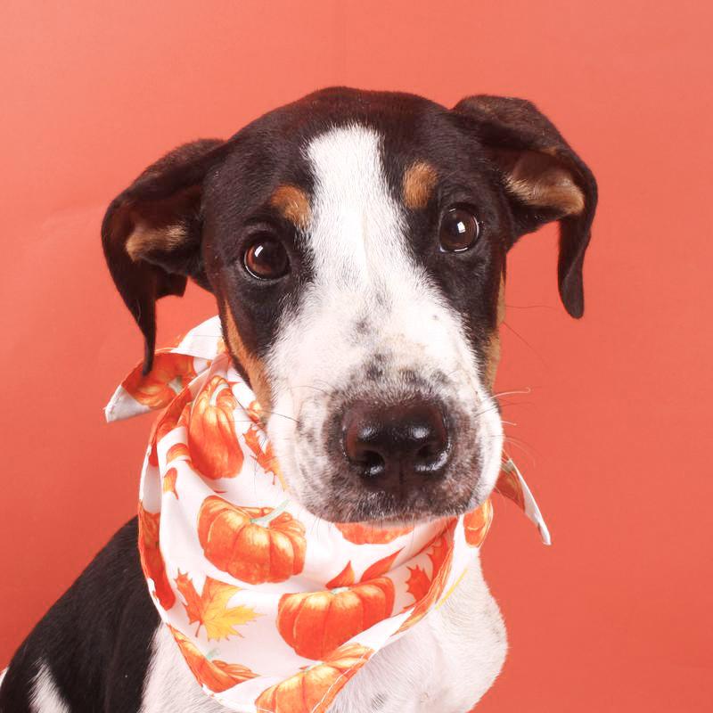 Time to harvest some fall memories with Jess! He is a 4 month old pup just around 20lbs of snuggles. He does well with other dogs and with a cat given a proper introduction to one. This sweet pup is learning the ropes and will need some guidance with leash, potty, and obedience training. He loves humans and treats making any future training a breeze so come meet this cute pup!