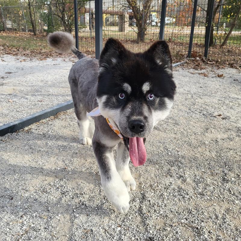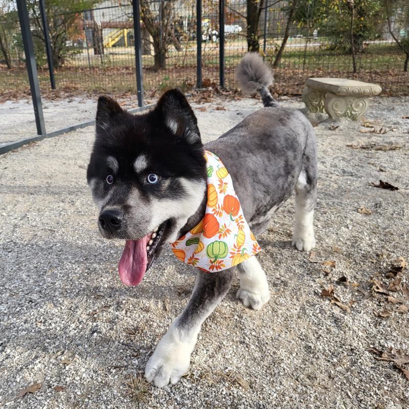 He`s a big, fluffy, 2-year-old sweetheart weighing just under 60 lbs. This dopey, gentle boy has been winning hearts since the moment he arrived. When Spruce came to us, he was severely matted and urgently needed a full grooming session. Despite how uncomfortable he must have been, he handled it all like a total trooper. Now he’s soft, tidy, and ready for a fresh start all thanks to Encore Grooming (Fayetteville)! Spruce is visually impaired (but not completely blind) and gets around remarkably well. He maps new spaces quickly, follows sound and scent with confidence, and approaches life with an easygoing, tail-wagging attitude. He enjoys the company of other dogs and would be happy to share his home with a friendly canine companion. This sweet fluffball is looking for a family who will love him exactly as he is — someone willing to be mindful of his limited vision and committed to keeping him groomed so he stays comfortable and healthy. If you’re searching for a loyal, tenderhearted companion who brings calm, joy, and the occasional goofy distant stare, Spruce might just be your perfect match!