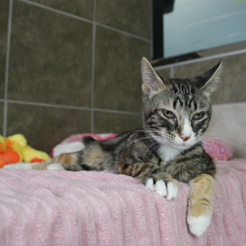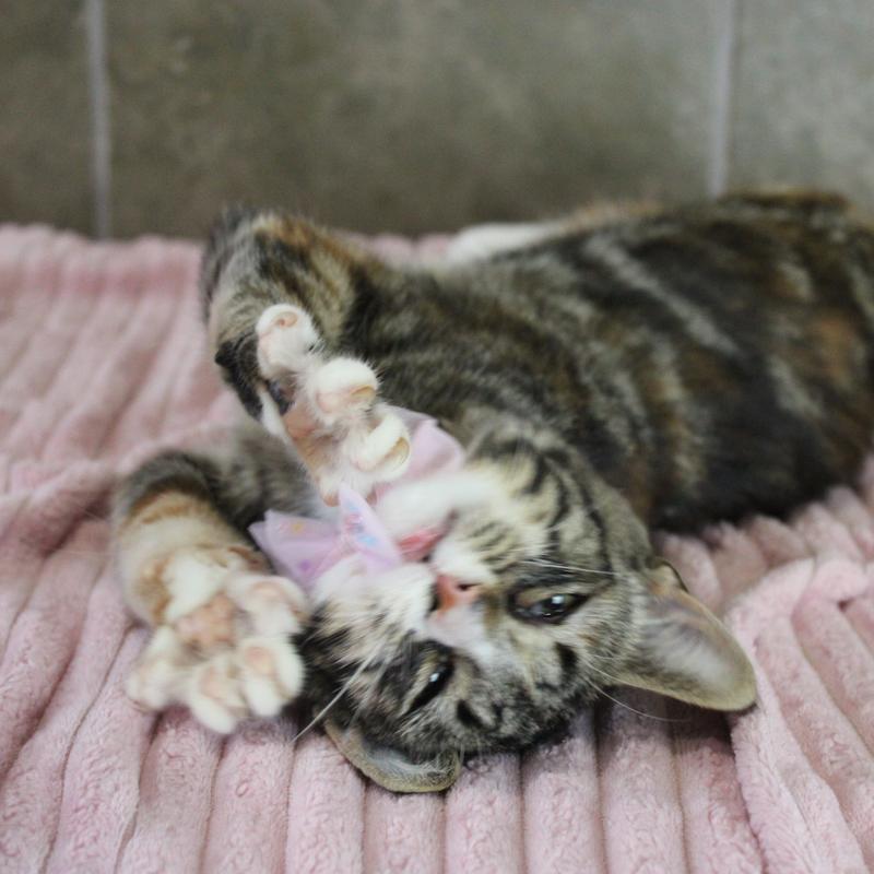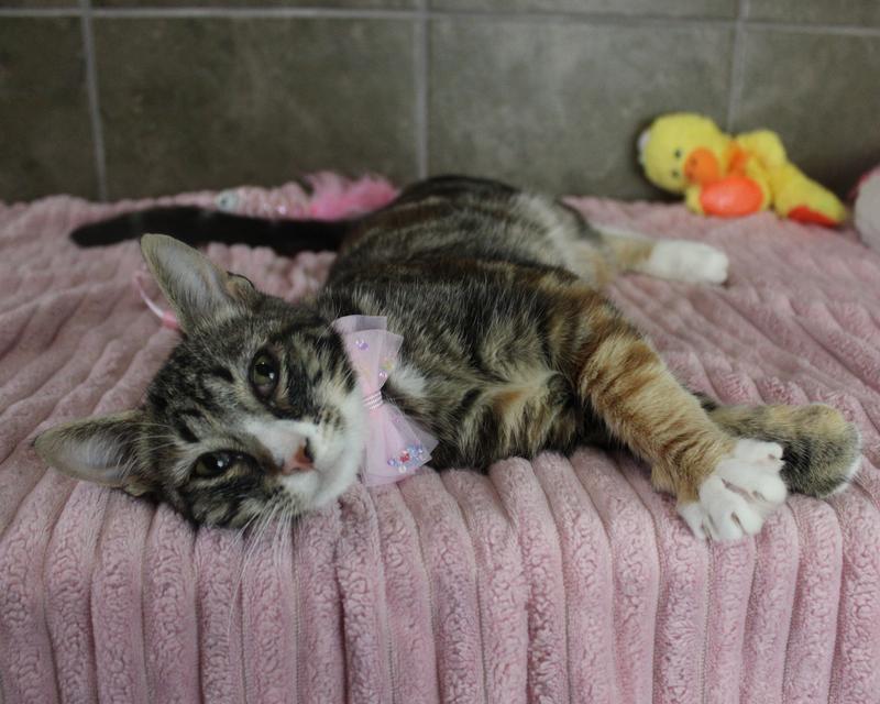 This gorgeous young beauty is Blossom and she is around 8 months old. She is such a sweet kitty, is super silly, playful, and loves being held and getting lots of snuggle time. Blossom did come in with upper respiratory infection(a kitty cold) but has responded well to treatment and doing great now! With a proper introduction she would probably love having another feline friend, a calm friendly dog and/ or children of any age to play with in her new home. Come meet this sweetie and give her a purrever family.