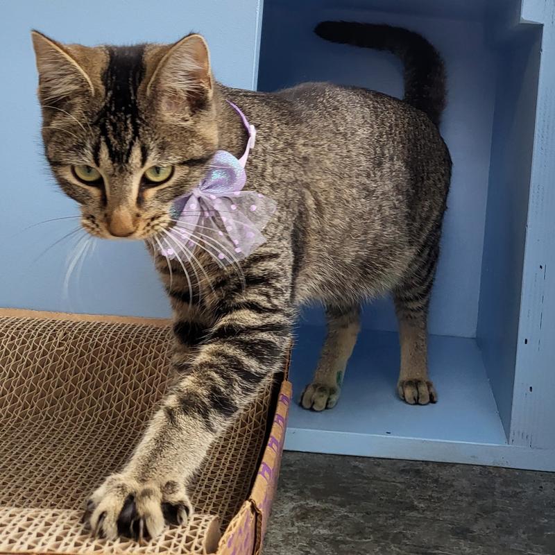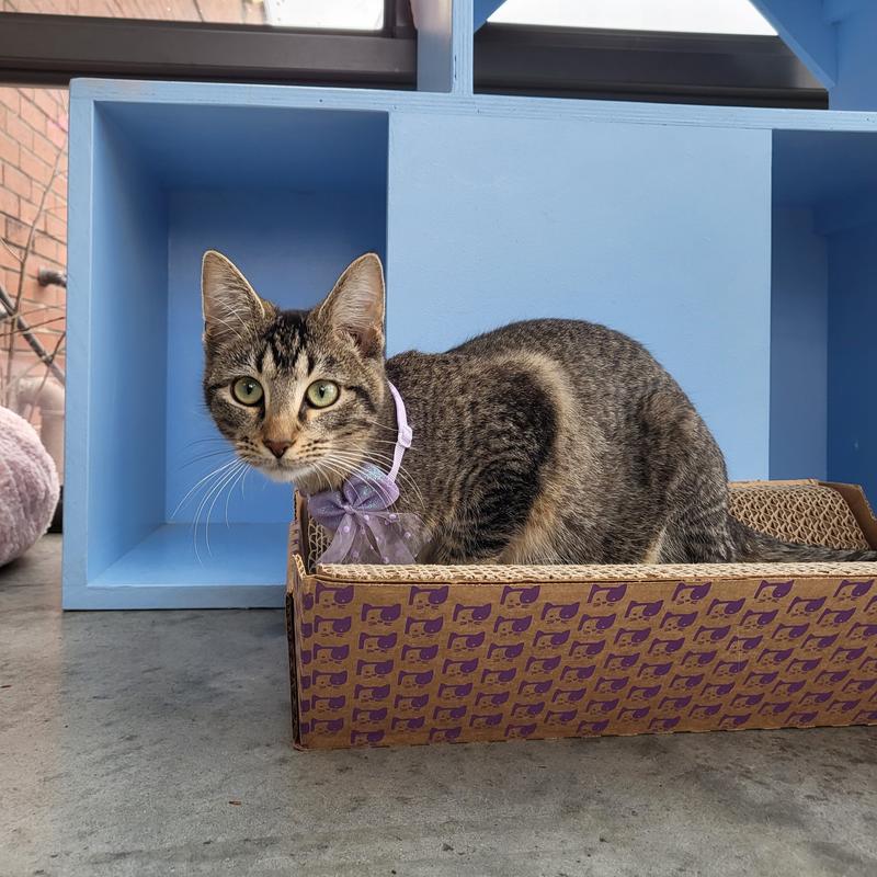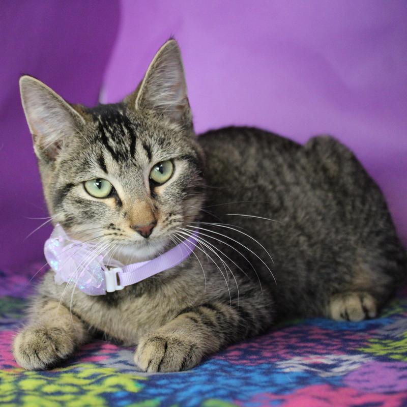 Meet Lilac! The adorable 1 year old lady with a personality as sweet as her little face. She is energetic, loves playing with all the toys and is such a little snugglebug. This baby would likely do well with other cats, kids, and dogs of all ages. She is spayed, microchipped, and up to date on vaccinations. Come meet this sweet baby girl today!