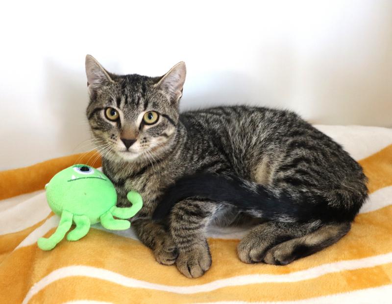 Sk8er Boi is a sweet and playful 6-month-old male kitten. With his soft, tabby fur and bright yellow eyes, he captures the hearts of everyone he meets. Sk8er Boi loves to explore every nook and cranny, often pretending he’s on a grand skateboarding adventure, hence his cool name. When he`s not busy chasing toys or climbing furniture, he enjoys snuggling up for a nap in the sunniest spot he can find. Sk8er Boi is a bundle of joy, bringing smiles and laughter to his forever home every day. He is neutered, fully vaccinated, microchipped and litterbox trained. Come check out this little boy and his brother Bob Sled and maybe give one or both a new forever family.