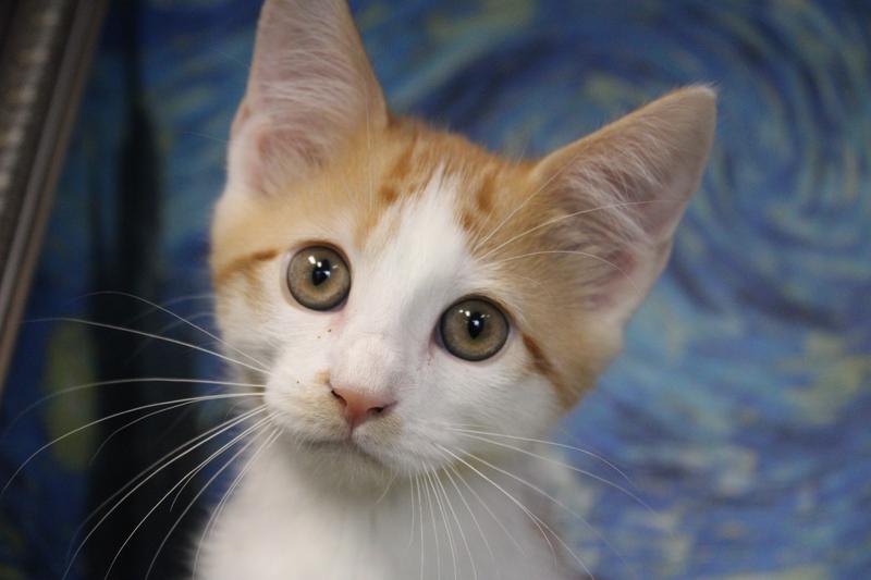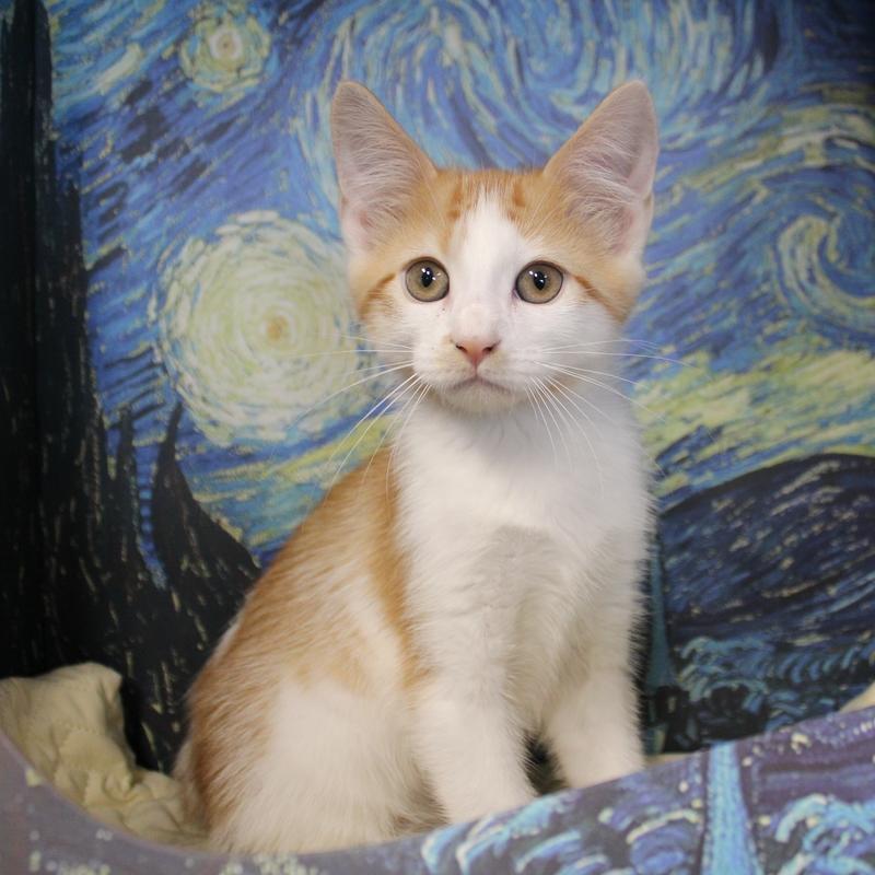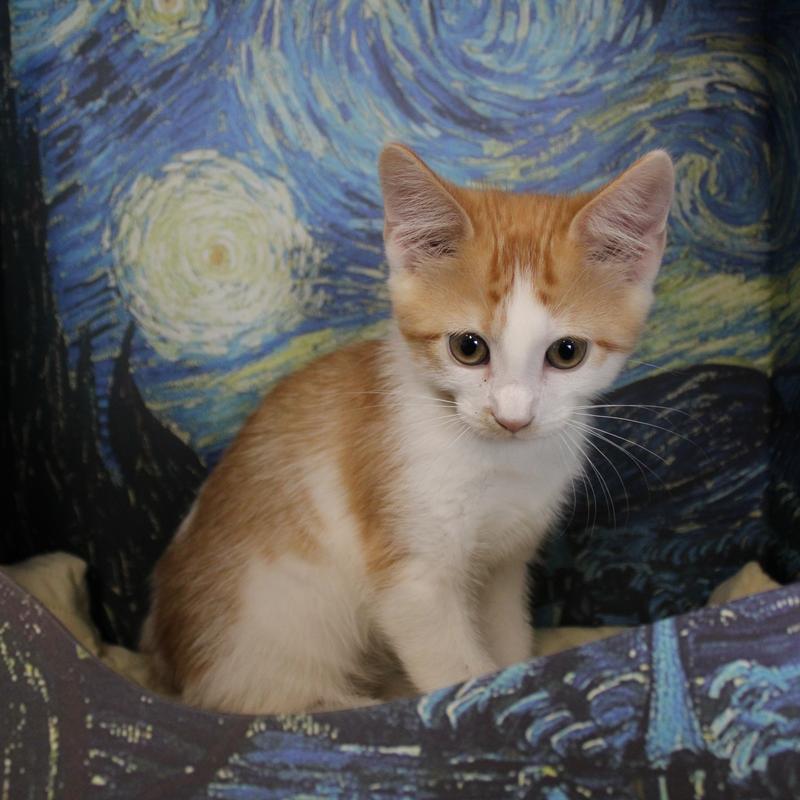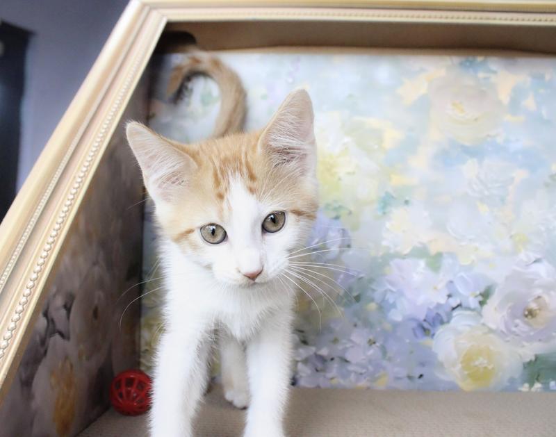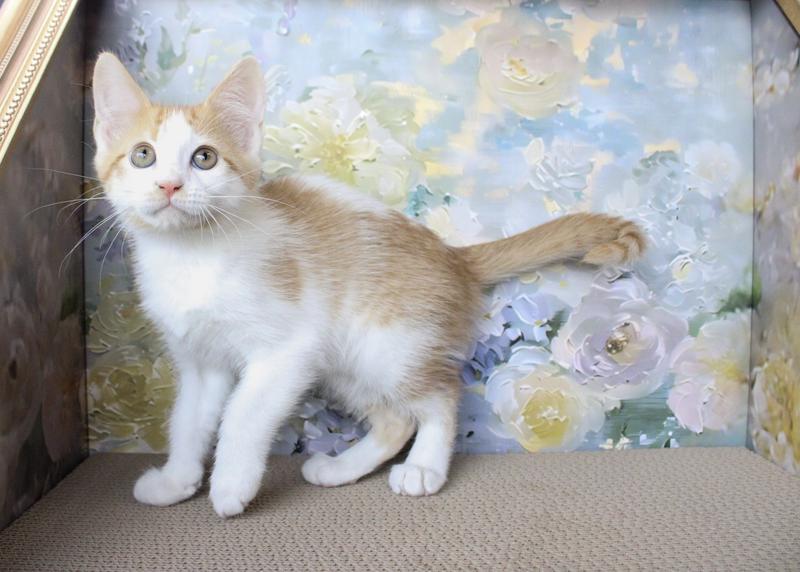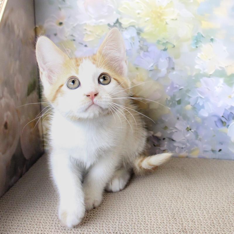 Cheerios is a three-month-old male kitten, who`s as cute as he is shy. He loves to explore his surroundings, though he often does so from a safe distance. While Cheerios might be a little timid at first, he quickly warms up to gentle voices and patient people. This sweet kitten enjoys playing with his siblings and toys and is learning to love snuggles. Although he may start off a bit shy, Cheerios is sure to win your heart with his gentle nature and playful spirit.