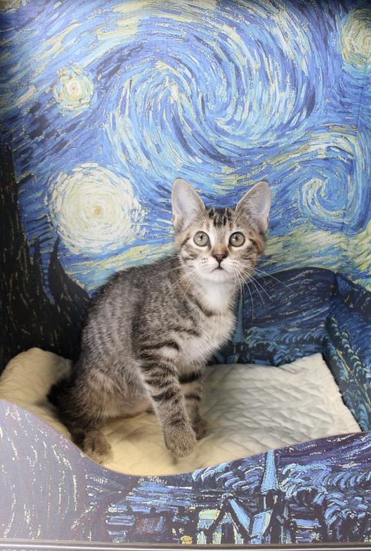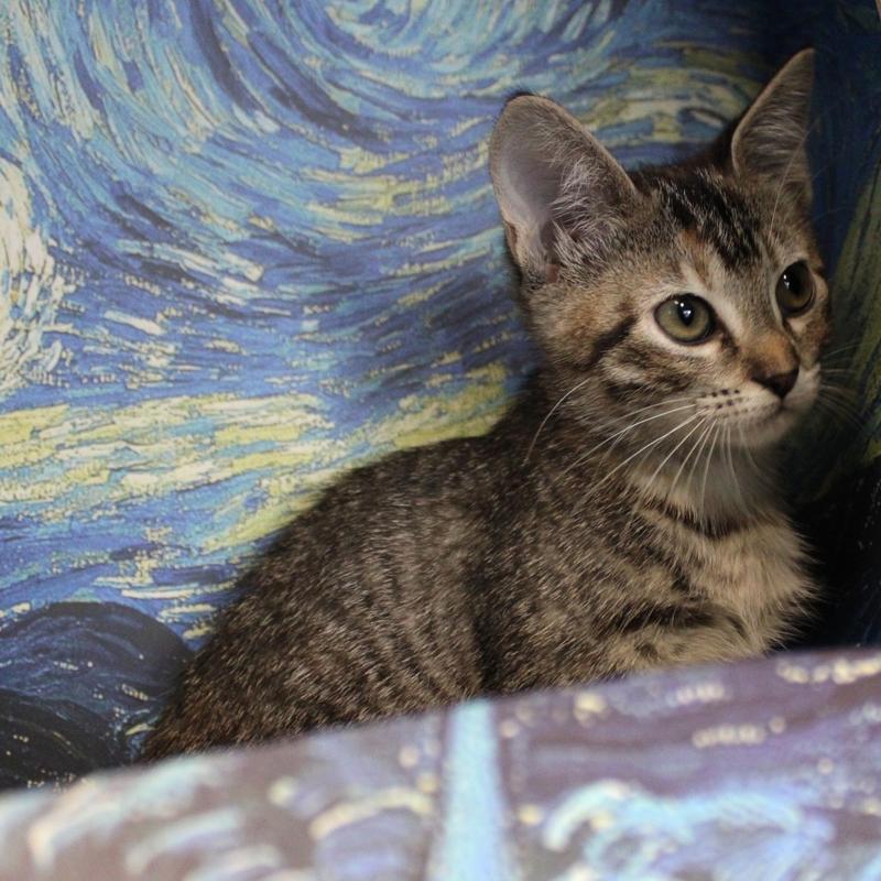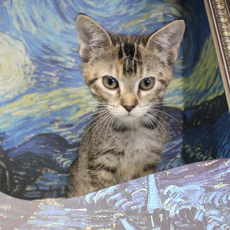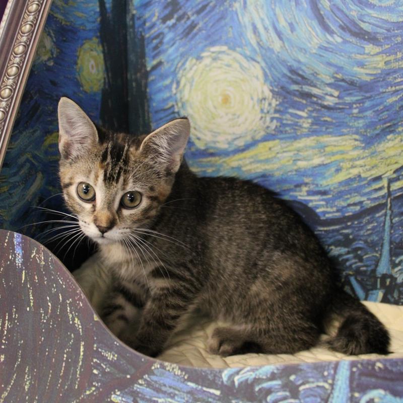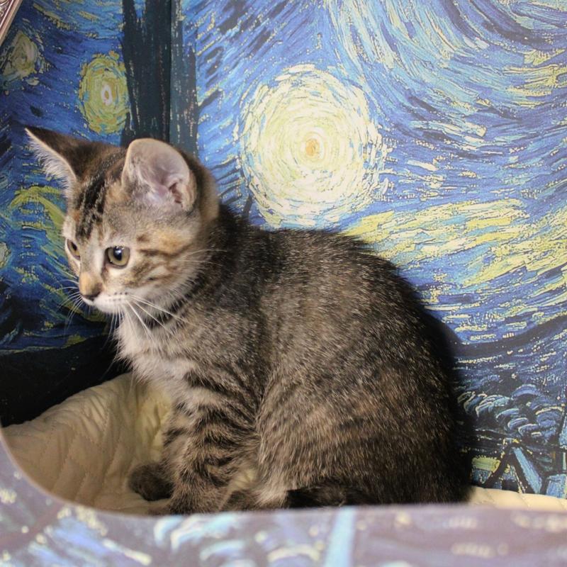 Trix is a three-month-old female kitten, who`s as adorable as she is shy. She loves to explore her surroundings, though she often does so from a safe distance. While Trix might be a little timid at first, She quickly warms up to gentle voices and patient people. This sweet kitten enjoys playing with her siblings and toys and is learning to love cuddle time. Although she may start off a bit shy, Trix is sure to win your heart with her sweet nature and playful spirit.