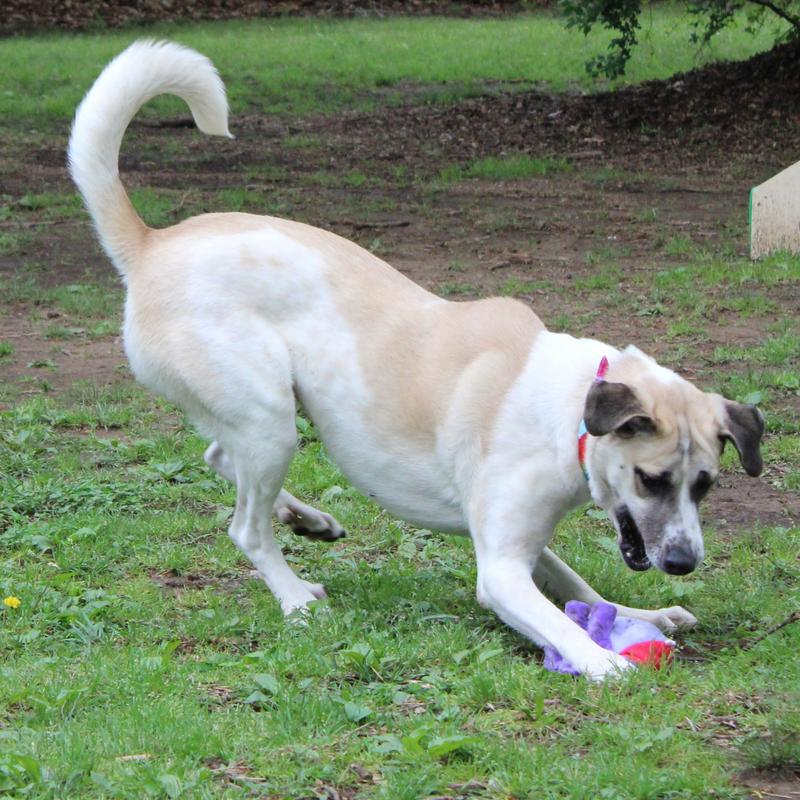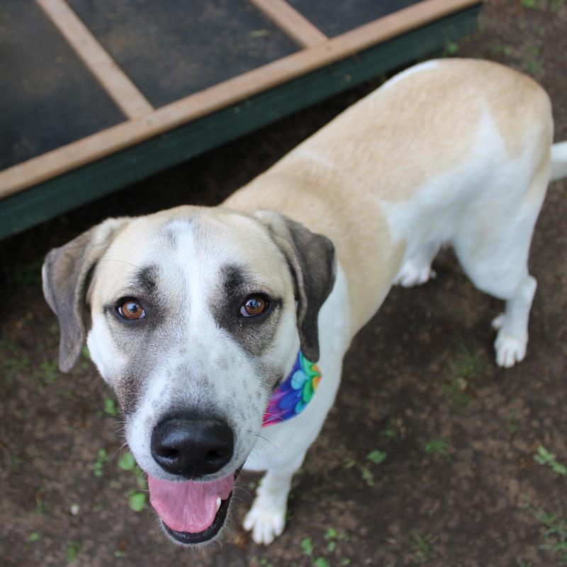 Welcoming Sammie! She`s 3 years old, about 80 pounds, and a very goofy giant! She was transferred from Good Shepherd Humane Society all the way in Eureka Springs, so we`re still getting to know her. What we`ve learned so far is that she`s very playful and friendly but has meek moments. She`s treat motivated, walks well on leash, keeps a decently clean kennel, and gets along with other young playful dogs! She`s newly available for adoption and ready to find her forever home!
