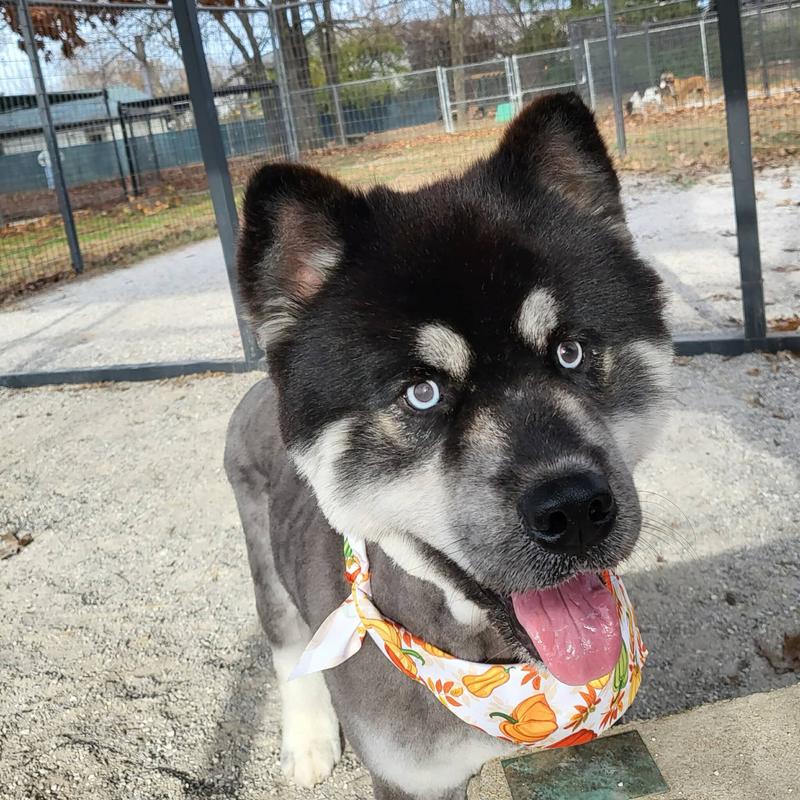He`s a big, fluffy, 2-year-old sweetheart weighing just under 60 lbs. This dopey, gentle boy has been winning hearts since the moment he arrived. When Spruce came to us, he was severely matted and urgently needed a full grooming session. Despite how uncomfortable he must have been, he handled it all like a total trooper. Now he’s soft, tidy, and ready for a fresh start all thanks to Encore Grooming of Fayetteville! Spruce is visually impaired (but not completely blind) and gets around remarkably well. He maps new spaces quickly, follows sound and scent with confidence, and approaches life with an easygoing, tail-wagging attitude. He enjoys the company of other dogs and would be happy to share his home with a friendly canine companion. This sweet fluffball is looking for a family who will love him exactly as he is — someone willing to be mindful of his limited vision and committed to keeping him groomed so he stays comfortable and healthy. If you’re searching for a loyal, tenderhearted companion who brings calm, joy, and the occasional goofy distant stare, Spruce might just be your perfect match!